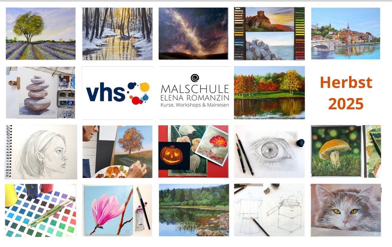| Bemerkungen | Die Teilnehmer verwenden ihre eigene Ausrüstung (Farben, Pinsel, Papier u.s.w.). Für die Materialliste kontaktieren Sie bitte vor Kursbeginn die Dozentin: elena@romanzin.de |